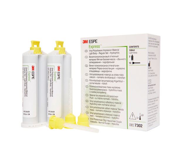Materiale da impronta in polivinilsilossano per la tecnica simultanea, doppia imrponta, con ottime proprietà di scorrimento.