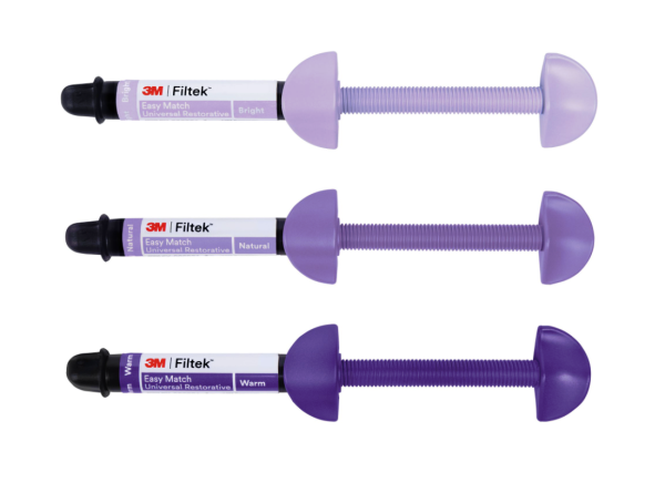 Grazie all’opacità che si adatta naturalmente al colore dei denti e ad oltre 50 anni di scienza ed innovazione nel campo dei compositi dentali, il compositio Filtek™ Easy Match Universal offre un sistema semplice ed intuitivo di selezione del colore per semplificare le procedure di restauro diretto senza compromettere l’opacita. Questo sistema a 3 colori è stato progettato per fornire un’eccellente match cromatico nella maggior parte dei casi clinici, in modo semplice e intuitivo.