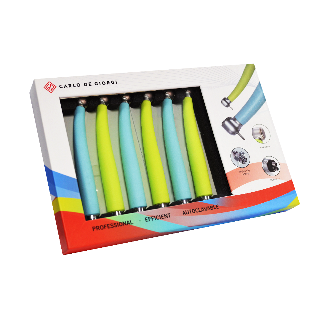 Perfette per la preparazione di cavità e corone, nonché per lavori di precisione e rifinitura, le turbine sono autoclavabili fino a 135°C e raggiungono una velocità di rotazione compresa tra 320.000 e 400.000 giri/minuto.